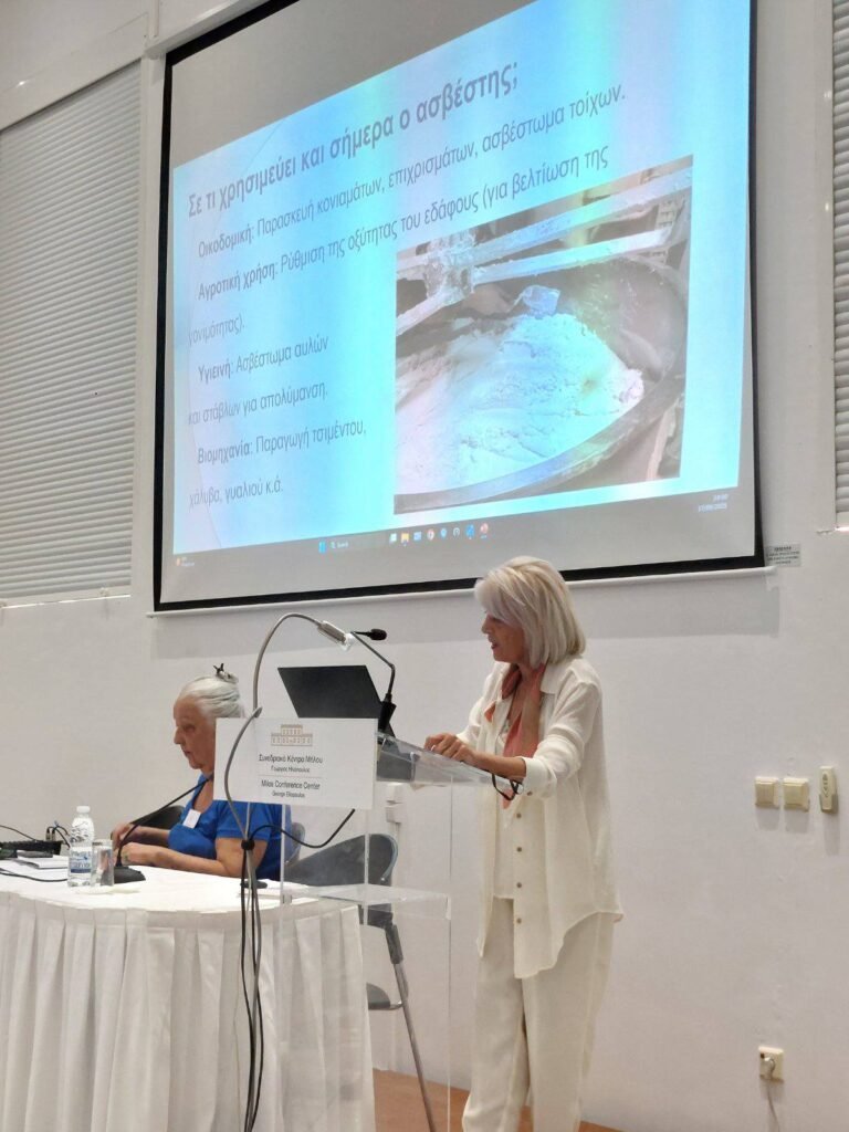 Η κα Κοντού είχε την τιμή να παρουσιάσει την εργασία της με τίτλο «Ασβεστοκάμινα και ασβεστοποιοί της Μυκόνου», ρίχνοντας φως σε μια ιστορική δραστηριότητα του νησιού που αποτελεί αναπόσπαστο κομμάτι της πολιτιστικής του κληρονομιάς. Η έρευνά της αναδεικνύει την παραδοσιακή τέχνη της ασβεστοποιίας και τους ανθρώπους που την εξασκούσαν, συμβάλλοντας στη διατήρηση της μνήμης και της ιστορίας του τόπου.