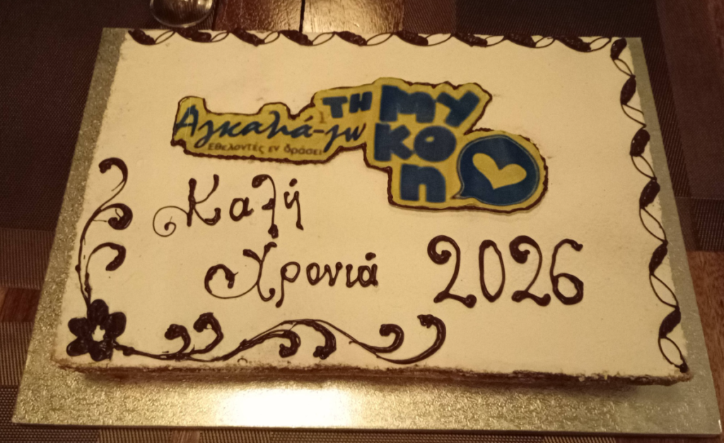 Σε μια ζεστή και αισιόδοξη ατμόσφαιρα, η εθελοντική ομάδα «Εθελοντές εν Δράσει – Αγκαλιά-Ζω τη Μύκονο» πραγματοποίησε την Παρασκευή, 16 Ιανουαρίου, την καθιερωμένη εκδήλωση για την κοπή της βασιλόπιτας στο αγαπημένο στέκι «Φιλότιμο».