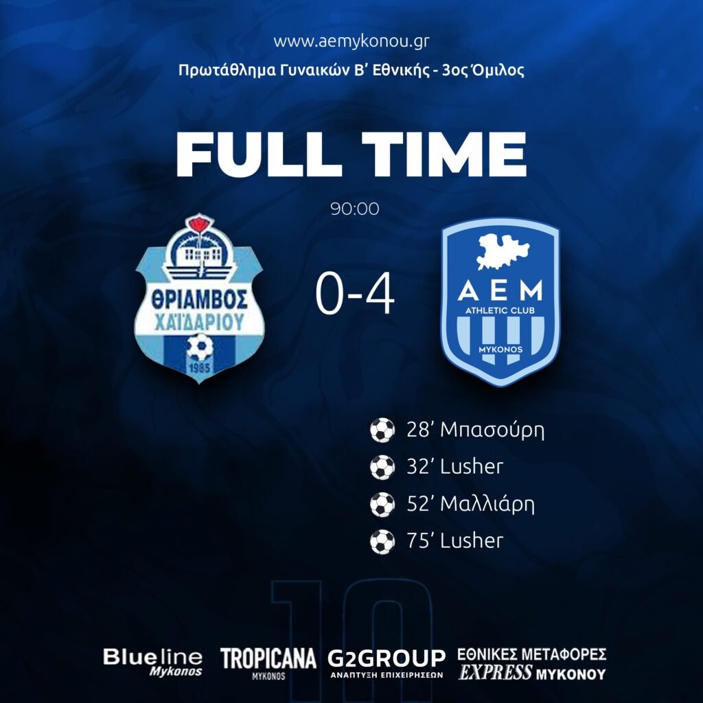 Με μια εμφατική νίκη επί του Θρίαμβου Χαϊδαρίου με σκορ 0-4, η γυναικεία μας ομάδα πέτυχε την πρώτη της εκτός έδρας επικράτηση στο πρωτάθλημα της Β’ Εθνικής Γυναικών, στέλνοντας σαφές μήνυμα για τις διαθέσεις της στη φετινή σεζόν.