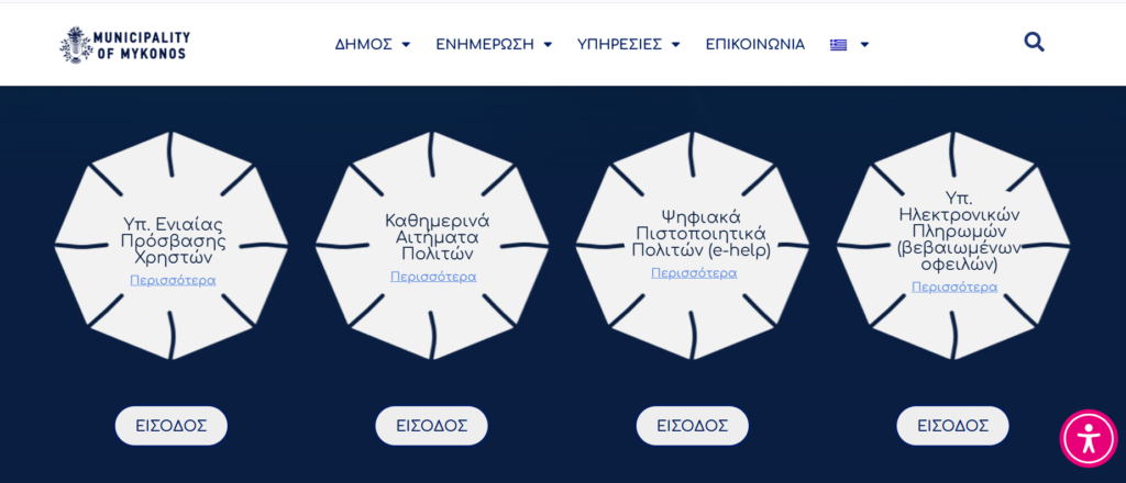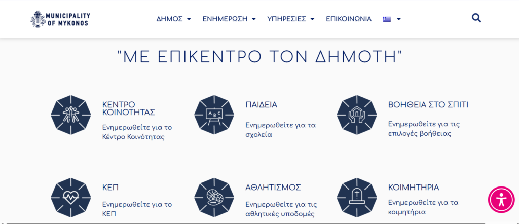 Ιδιαίτερη έμφαση έχει δοθεί στους πυλώνες της διαφάνειας, της συμμετοχής και της άμεσης επικοινωνίας. Μέσα από τη δημοσίευση νέων και ανακοινώσεων του Δήμου, το νέο website στοχεύει να δημιουργήσει έναν ζωντανό δίαυλο επικοινωνίας, αφουγκραζόμενο τις ανάγκες της κοινωνίας. Ο Δήμος Μυκόνου σηματοδοτεί έτσι μια νέα εποχή: ανοιχτός, συμμετοχικός και απόλυτα σύγχρονος.