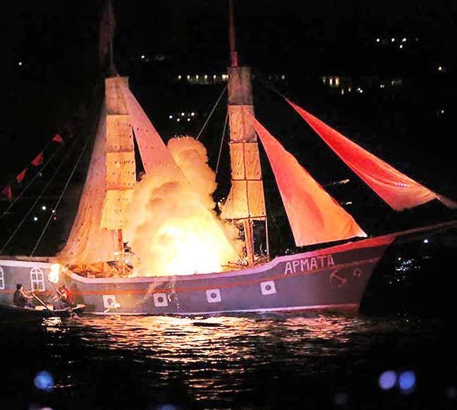 . Με την εντυπωσιακή αναπαράσταση της ναυαρχίδας, τα λαμπερά πυροτεχνήματα και την έντονη παρουσία του Δημήτρη Ρουσούνελου, η φετινή «Αρμάτα» άφησαν τις καλύτερες εντυπώσεις σε όλους τους παρευρισκόμενους.