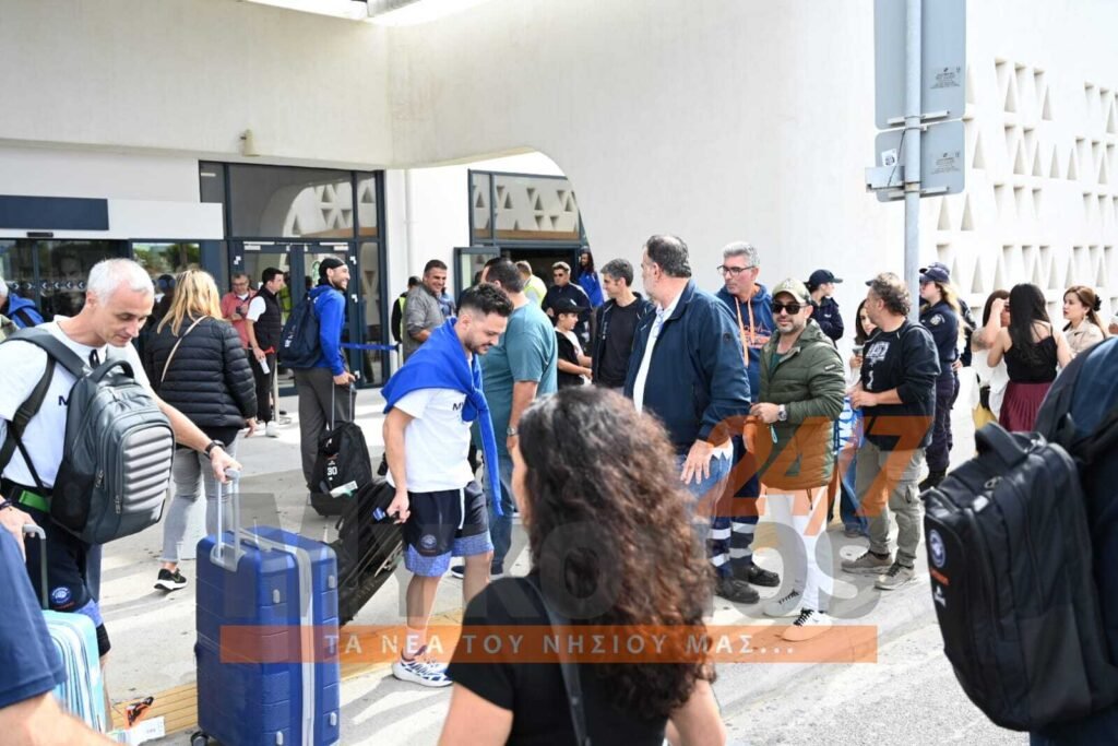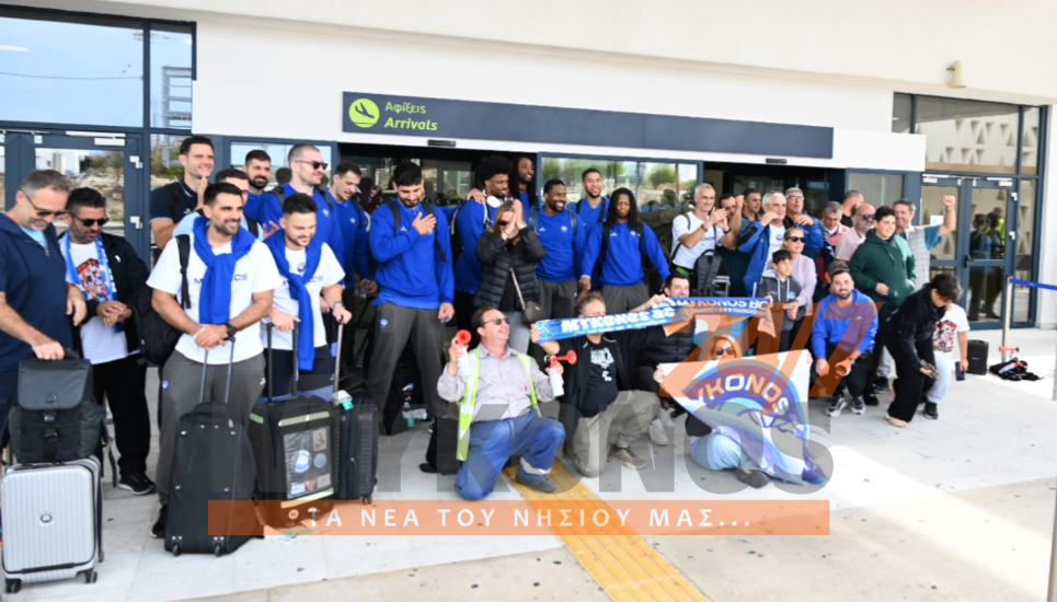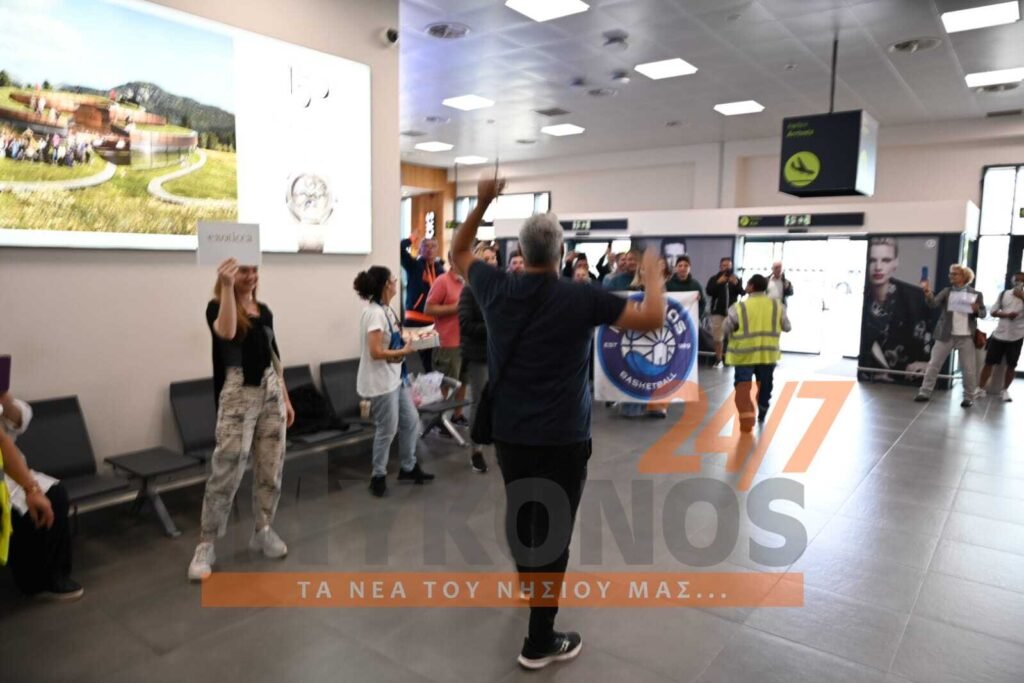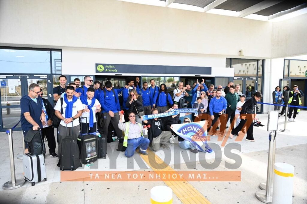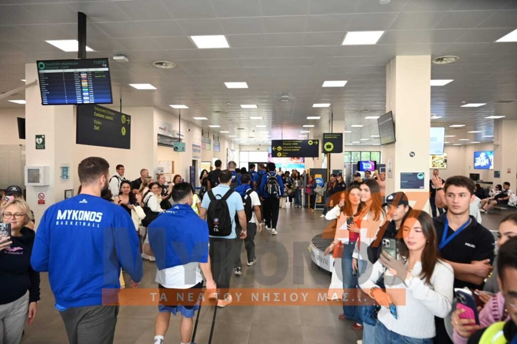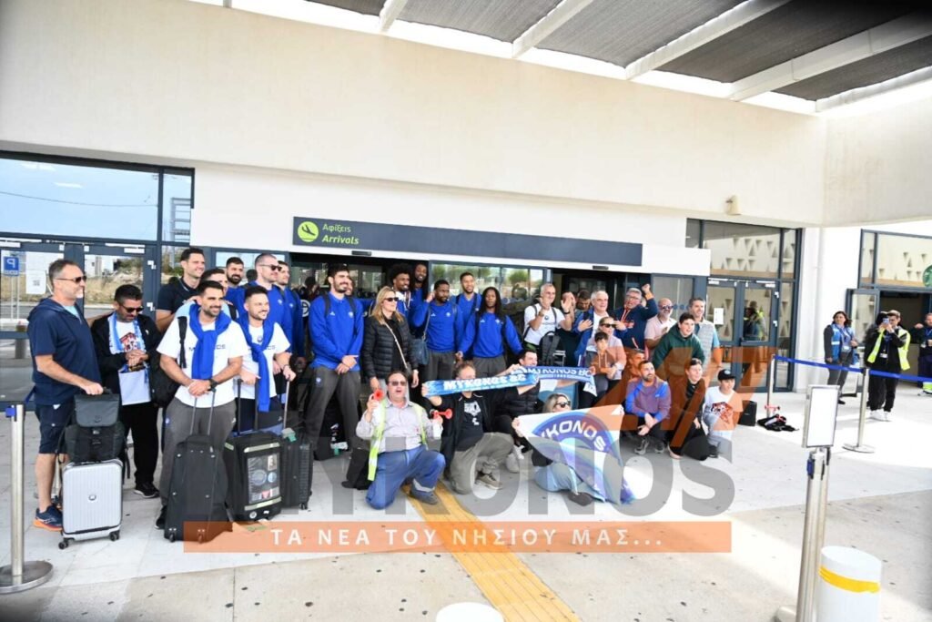 Στο πόδι βρέθηκε σήμερα το μεσημέρι το αεροδρόμιο της Μυκόνου, μετατρεπόμενο σε ένα φαντασμαγορικό γήπεδο πανηγυρισμών, προκειμένου να υποδεχθεί τους θριαμβευτές της Mykonos Betsson BC. Η ομάδα μπάσκετ, επιστρέφοντας στο νησί μετά την πρώτη της νίκη στην φετινή GBL, γνώρισε την αποθέωση από τους πιστούς φιλάθλους της, οι οποίοι δημιούργησαν μία ατμόσφαιρα συγκινιτική.