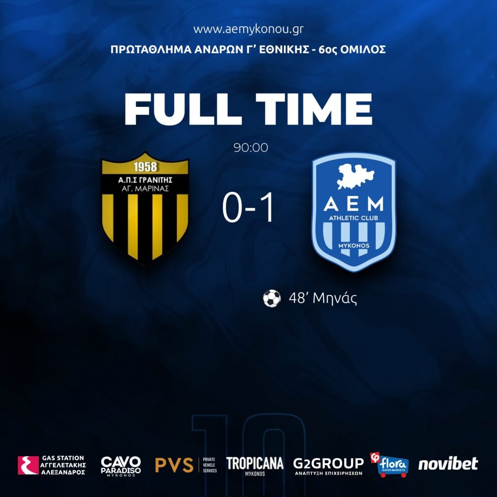 Το γκολ αυτό αποδείχθηκε αρκετό για να χαρίσει τους τρεις βαθμούς της νίκης στην ομάδα της Μυκόνου. Η ΑΕΜ διαχειρίστηκε με επιτυχία το προβάδισμα μέχρι το τελευταίο σφύριγμα, δείχνοντας χαρακτήρα και αμυντική συνέπεια απέναντι σε μια έδρα που παραδοσιακά είναι δύσκολη.
