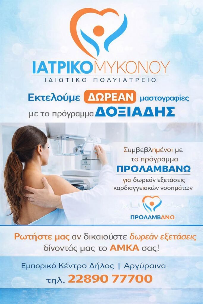 Το Ιατρικό Μυκόνου συνεχίζει να επενδύει σε τεχνολογία και εξειδικευμένο προσωπικό, υπενθυμίζοντας πως η πρόληψη είναι η ανώτερη μορφή φροντίδας.