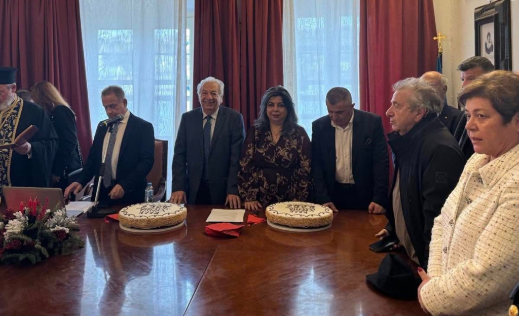 Αμέσως μετά την τελετή στη θάλασσα, η εορταστική ατμόσφαιρα μεταφέρθηκε στο Δημαρχιακό Μέγαρο. Εκεί, παρουσία εκπροσώπων της τοπικής αυτοδιοίκησης και πολιτών, πραγματοποιήθηκε η καθιερωμένη κοπή της Αγιοβασιλιάτικης πίτας για το καλωσόρισμα του 2026.