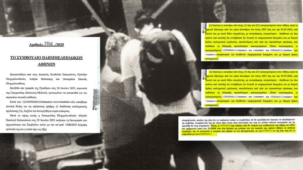 Στη φερόμενη ως εγκληματική οργάνωση υπήρχαν διακριτοί ρόλοι, «συγκεκριμένη δομή, κατανομή εγκληματικών ρόλων και εγκληματική σε βάθος χρόνου προοπτική», σύμφωνα πάντα με το παραπεμπτικό βούλευμα. «Η βούληση του καθενός υποτάσσεται στη βούληση της ολότητας και στην οποία τα μέλη αισθάνονται έναντι αλλήλων ως ενιαία ομάδα», διαπράττοντας από κοινού πράξεις όπως η εκβίαση υπό την απειλή «βλάβης» της επιχείρησης κατ’ επάγγελμα, κατά συναυτουργία, κατά συρροή και κατ’ εξακολούθηση.