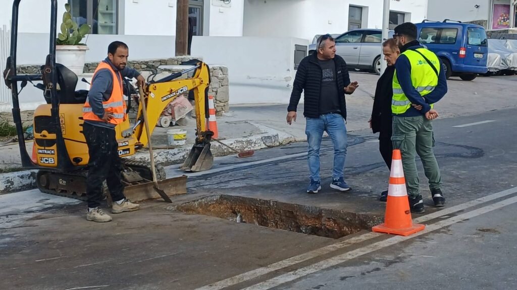 Το πρόβλημα εντοπίστηκε στον νέο περιφερειακό της Μυκόνου, όπου ο αγωγός ομβρίων βρέθηκε πλήρως φραγμένος. Σύμφωνα με τις εκτιμήσεις των τεχνικών υπηρεσιών, η έμφραξη προκλήθηκε πιθανότατα από τις έντονες περσινές νεροποντές, οι οποίες μετέφεραν φερτά υλικά στο εσωτερικό του δικτύου.