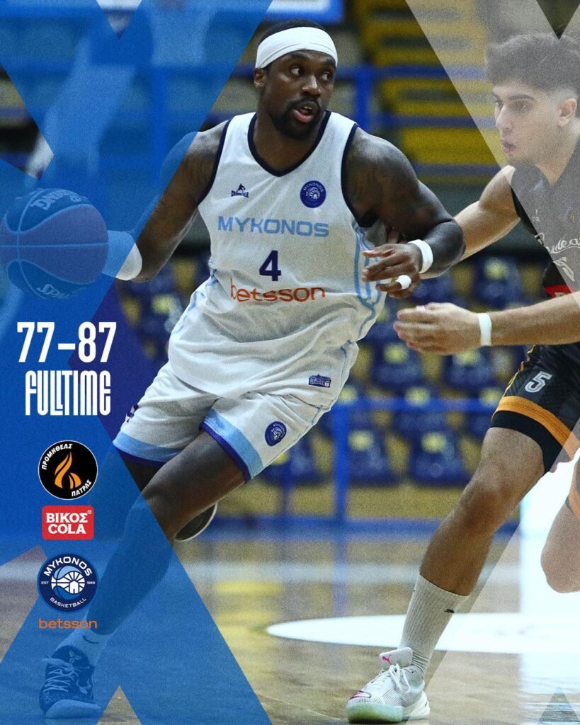 Η Μύκονος Betsson επιβλήθηκε του Προμηθέα Πατρών Βίκος Cola με 77-87 στην πρεμιέρα του 6ου τουρνουά «Νίκος Φάσουρας», σημειώνοντας 12/20 τρίποντα και έχοντας ως πρώτο σκόρερ τον Τζέρεμι Έβανς (19π.)