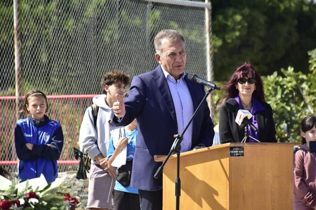 Το έργο, με προϋπολογισμό 417.000 ευρώ, χαρακτηρίστηκε από τον Υπουργό ως ένα έργο που «θα αλλάξει την καθημερινότητα των παιδιών και των νέων του νησιού», προσφέροντας έναν «σύγχρονο, ασφαλή και λειτουργικό χώρο άθλησης». Στην επίσκεψή του, ο κ. Βρούτσης συνοδευόταν από τον βουλευτή Κυκλάδων, Μάρκο Καφούρο, και ένα «αστερισμό» κορυφαίων προσωπικοτήτων του ελληνικού αθλητισμού.
