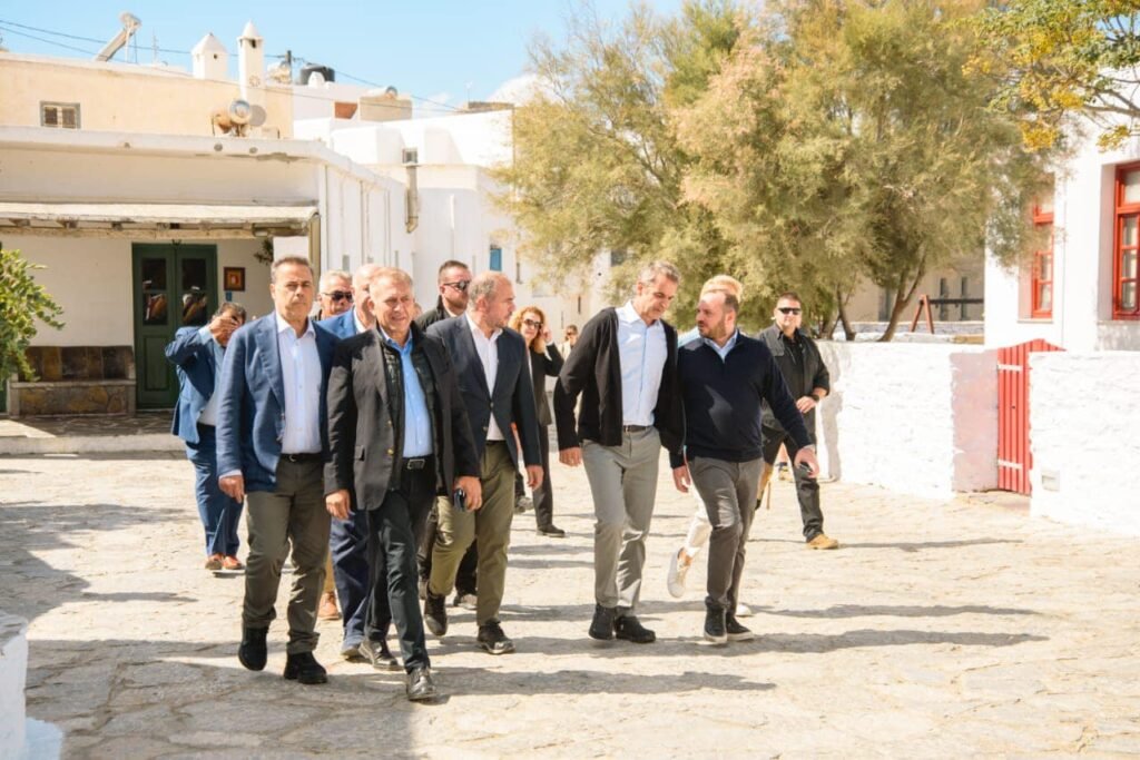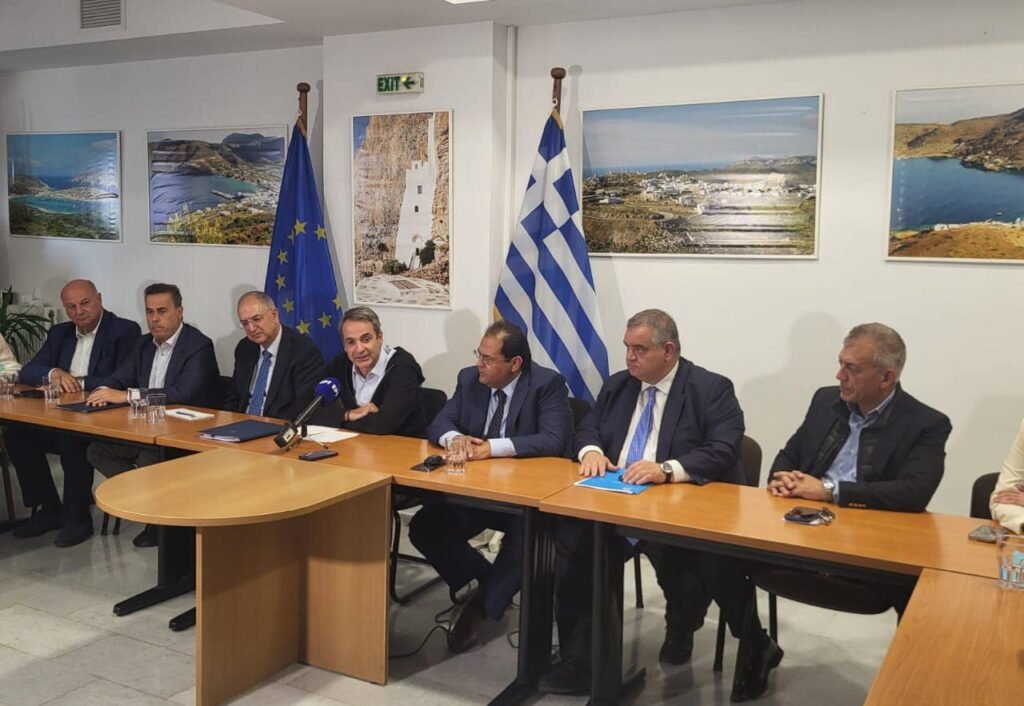 Η επίσκεψη ξεκίνησε με διευρυμένη σύσκεψη στο Δημαρχείο Αμοργού, όπου ο Δήμαρχος, Λευτέρης Καραΐσκος, έθεσε στον Πρωθυπουργό την ανάγκη για υγειονομική θωράκιση, αναβάθμιση των υποδομών, προστασία του περιβάλλοντος και ανάπτυξη της τοπικής οικονομίας.