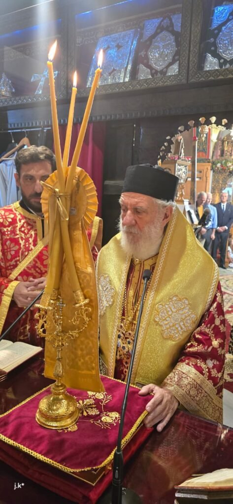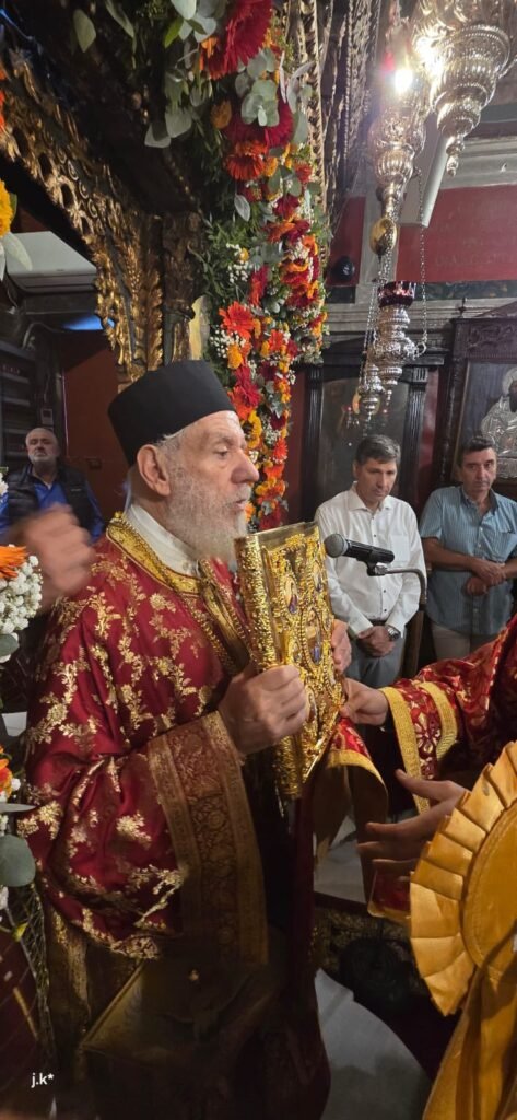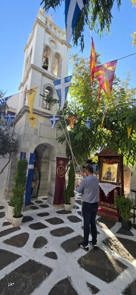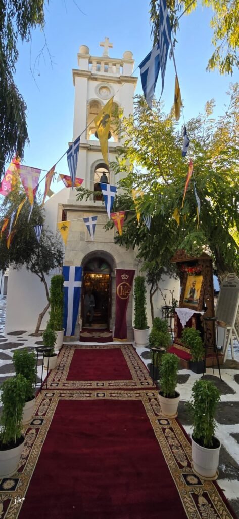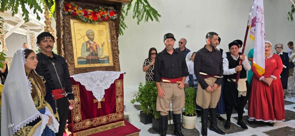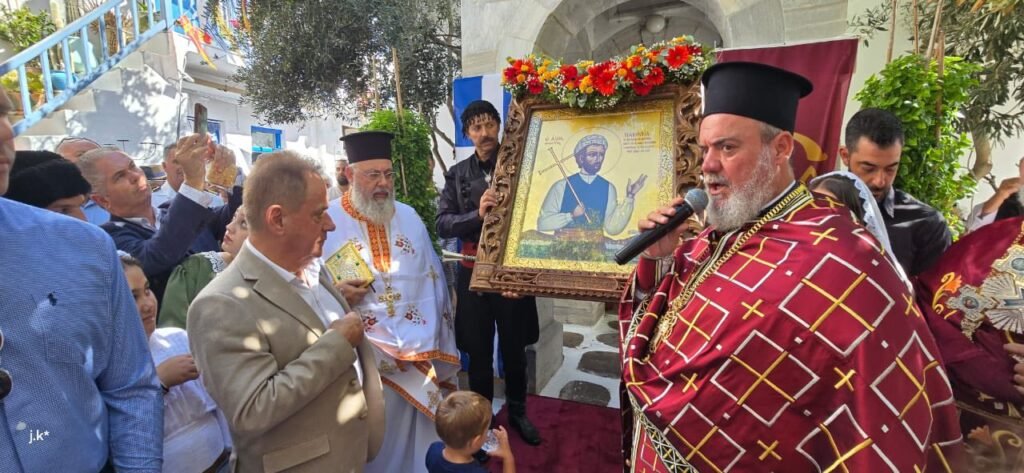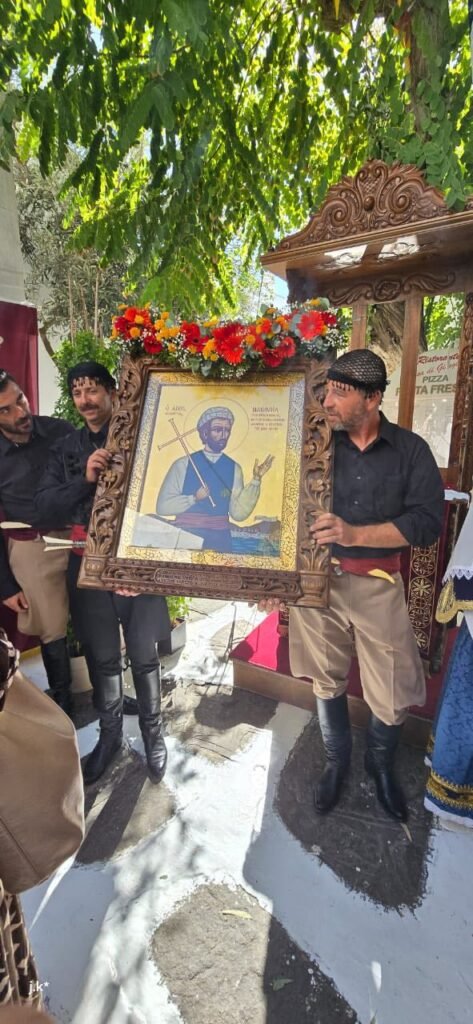 Ακολούθως, ο Σεβασμιώτατος κ. Δωρόθεος Β’ ετέθη επικεφαλής της λιτανείας της ιεράς εικόνος του Αγίου Νεομάρτυρος Μανουήλ, την οποία πλαισίωσαν Μέλη του Πολιτιστικού Συλλόγου “ΜΑΝΤΩ”, με παραδοσιακές ενδυμασίες και Κρήτες, οι οποίοι ζουν στη Μύκονο και κάθε χρόνο ιδιαιτέρως τιμούν το συντοπίτη τους Άγιο Μανουήλ.