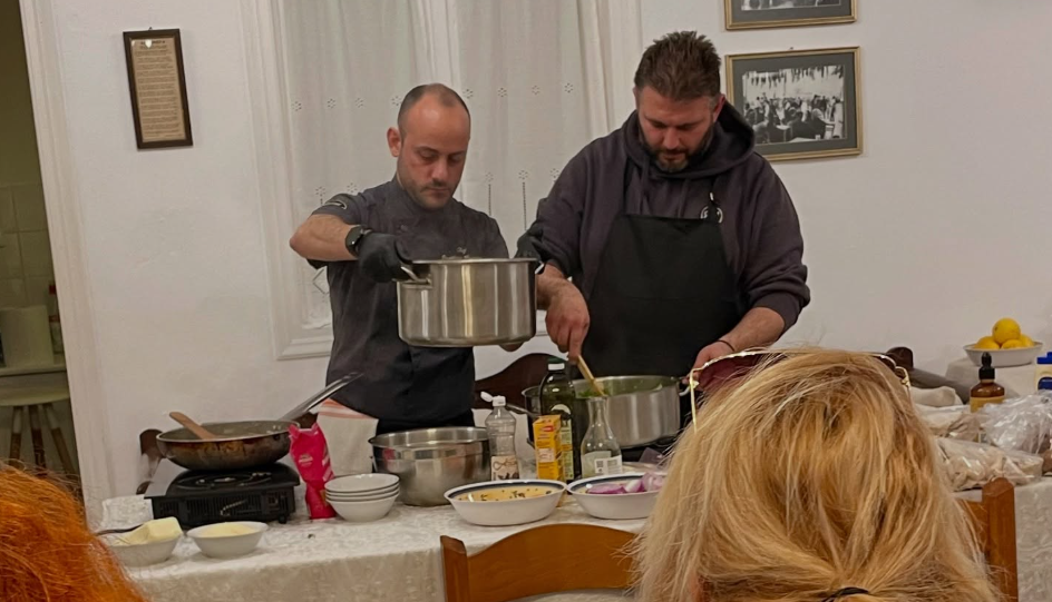 Στην αίθουσα εκδηλώσεων της Κοινότητας στην Άνω Μερά, ο Παναγιώτης Μενάρδος και ο Βάιος Ντούτσιας, οι άνθρωποι πίσω από τα επιτυχημένα εστιατόρια M-eating και Kalita, αφήνουν για λίγο την οδό Καλογερά στη Χώρα για να μοιραστούν τα μυστικά τους με το κοινό.