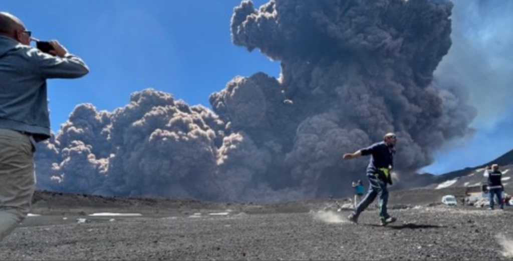 Μαύρο σύννεφο καπνού ύψους πολλών χιλιομέτρων έχει δημιουργηθεί πάνω από τον κρατήρα της Αίτνας.