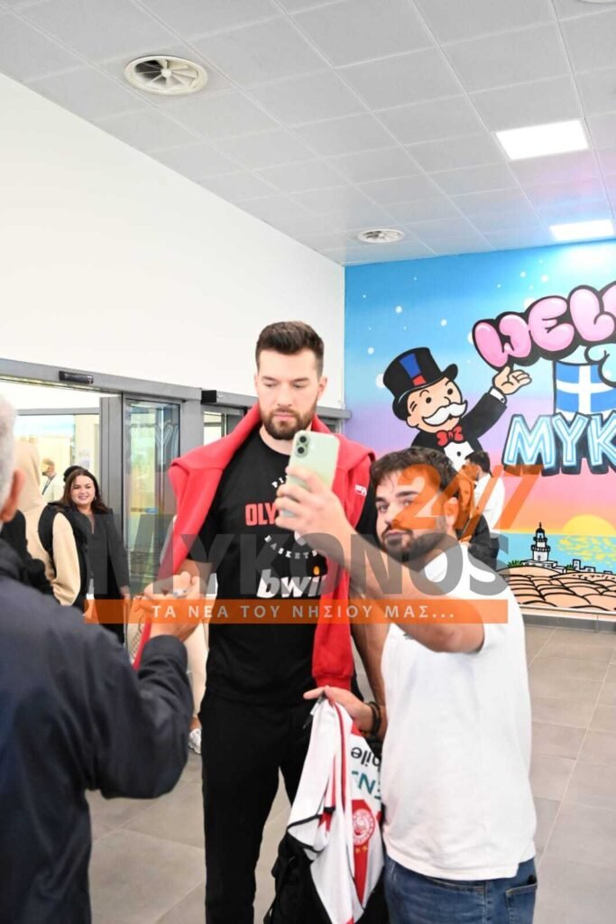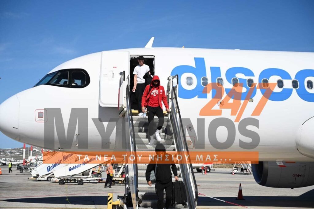 Οι «ερυθρόλευκοι», ταξιδεύοντας με απευθείας πτήση από το Μόναχο, έτυχαν θερμής υποδοχής στο αεροδρόμιο της Μυκόνου. Πλήθος φιλάθλων του Ολυμπιακού, μόνιμοι κάτοικοι του νησιού αλλά και επισκέπτες, έσπευσαν να καλωσορίσουν τους παίκτες.
