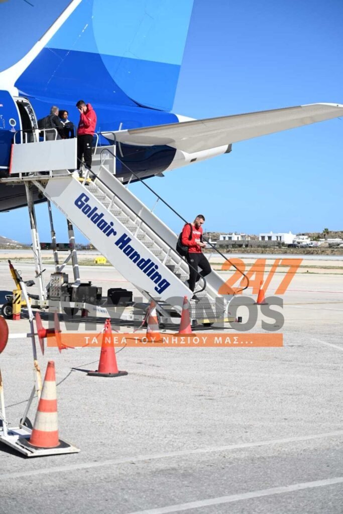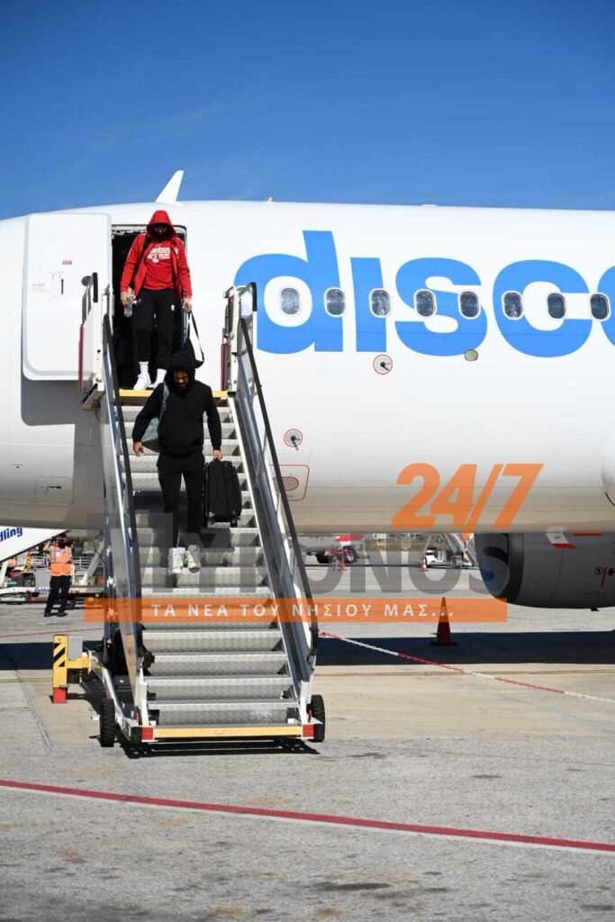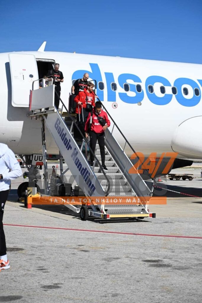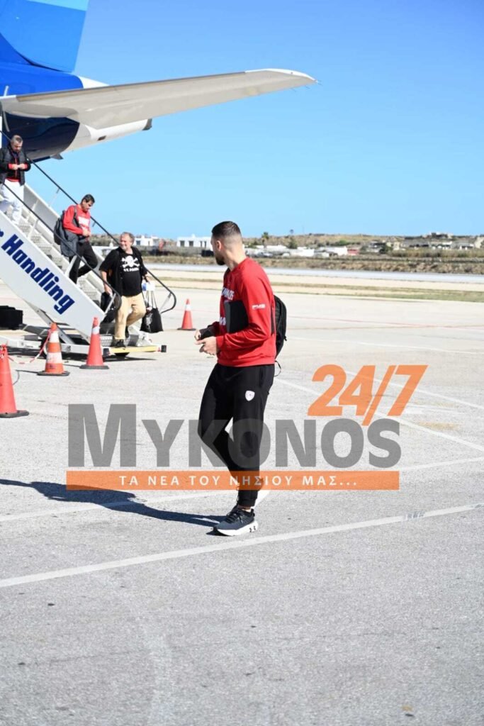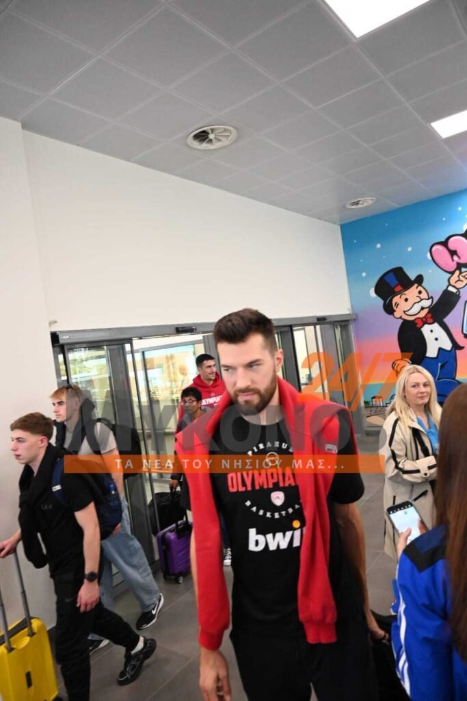 Σε κλίμα ενθουσιασμού και αθλητικής προσμονής προσγειώθηκε το μεσημέρι του Σαββάτου η αποστολή του πρωταθλητή Ολυμπιακού στο νησί των Ανέμων, ενόψει του αυριανού μεγάλου αγώνα (Κυριακή, 13:00) απέναντι στην τοπική Mykonos Betsson BC.