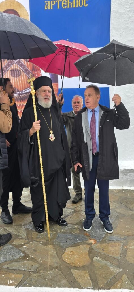 Στην πανηγυρική του ομιλία, ο Σεβασμιώτατος αναφέρθηκε στη ζωή και το μαρτύριο του Αγίου Αρτεμίου, υπογραμμίζοντας τις ευεργεσίες και τη διαχρονική προστασία του προς τους κατοίκους της Μυκόνου.