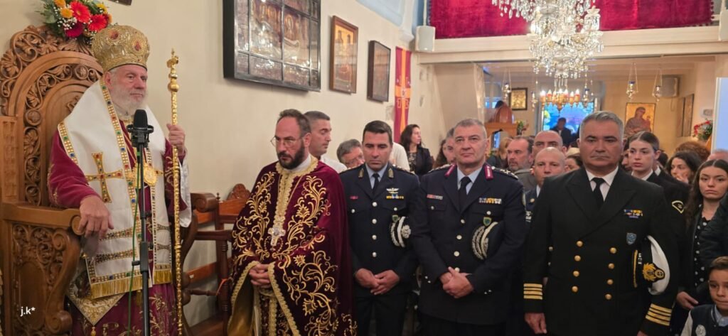 Στο πλαίσιο του εορτασμού, τελέστηκε Δοξολογία επί τη εορτή της Ελληνικής Αστυνομίας. Ο Σεβασμιώτατος κ. Δωρόθεος Β’ απηύθυνε ευχές προς τον παριστάμενο Περιφερειακό Αστυνομικό Διευθυντή Ν. Αιγαίου, Υποστράτηγο κ. Λουκά Θάνου, τους Διοικητές και τα Στελέχη, συγχαίροντάς τους για την «εύορκο επιτέλεση της αποστολής τους στη διαφύλαξη της τάξεως και την κυριαρχία της ευνομίας».