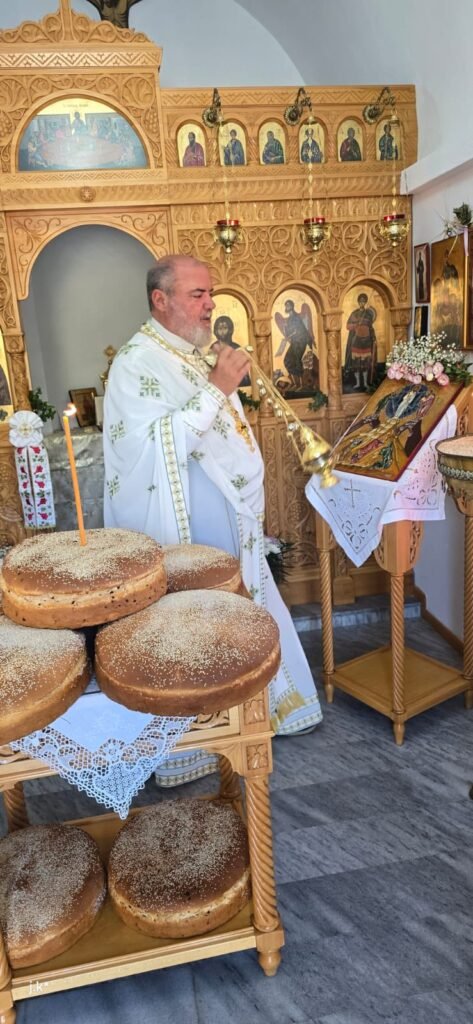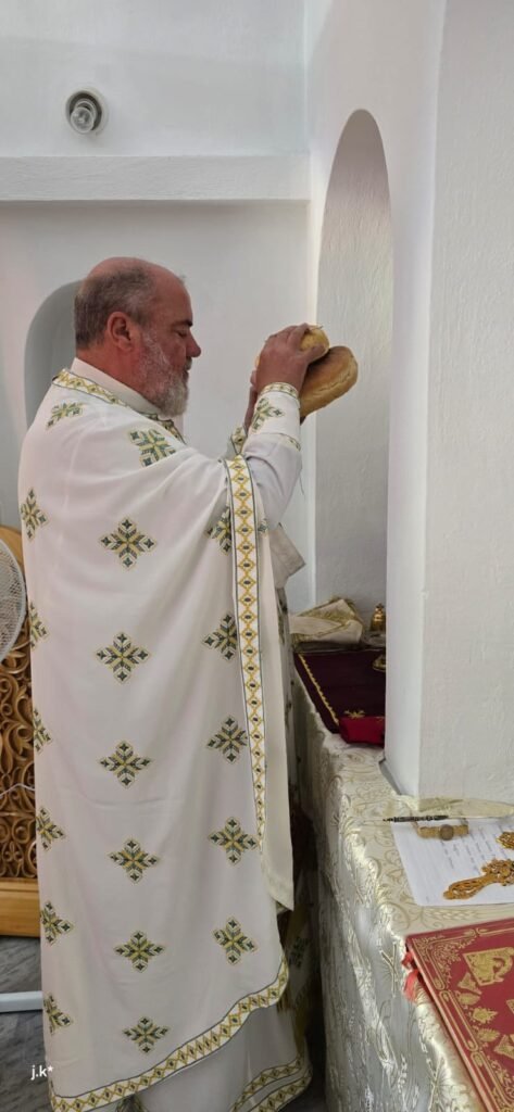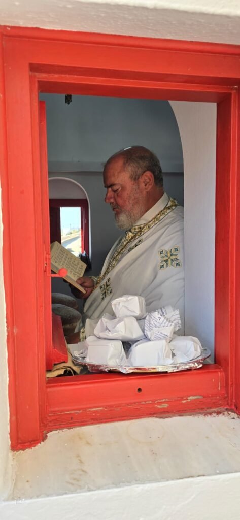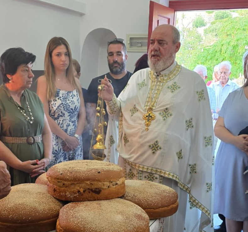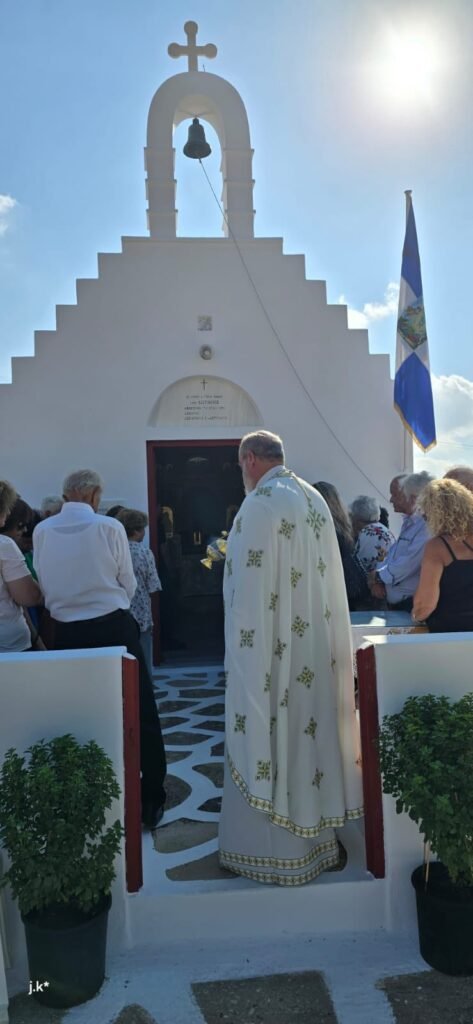 Τη Θεία Λειτουργία τέλεσε ο Αιδεσιμότατος Πρωτοπρεσβύτερος Πέτρος Μαραγκός, Αρχιερατικός Επίτροπος Μυκόνου και Δήλου, ο οποίος, μετά το πέρας της λειτουργίας, έδωσε τις ευλογίες του και ευχήθηκε σε όλους τους παρευρισκομένους χρόνια πολλά και καλό Δεκαπενταύγουστο.