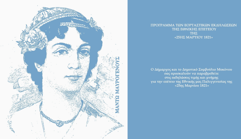 Με κάθε επισημότητα και μια σειρά εκδηλώσεων που εκτείνονται σε όλο το νησί, ο Δήμος Μυκόνου τιμά την επέτειο της Εθνικής Παλιγγενεσίας. Το πρόγραμμα, το οποίο περιλαμβάνει δράσεις στη Χώρα και την Άνω Μερά, κορυφώνεται την Τετάρτη 25 Μαρτίου 2026 με τις καθιερωμένες παρελάσεις και δοξολογίες.