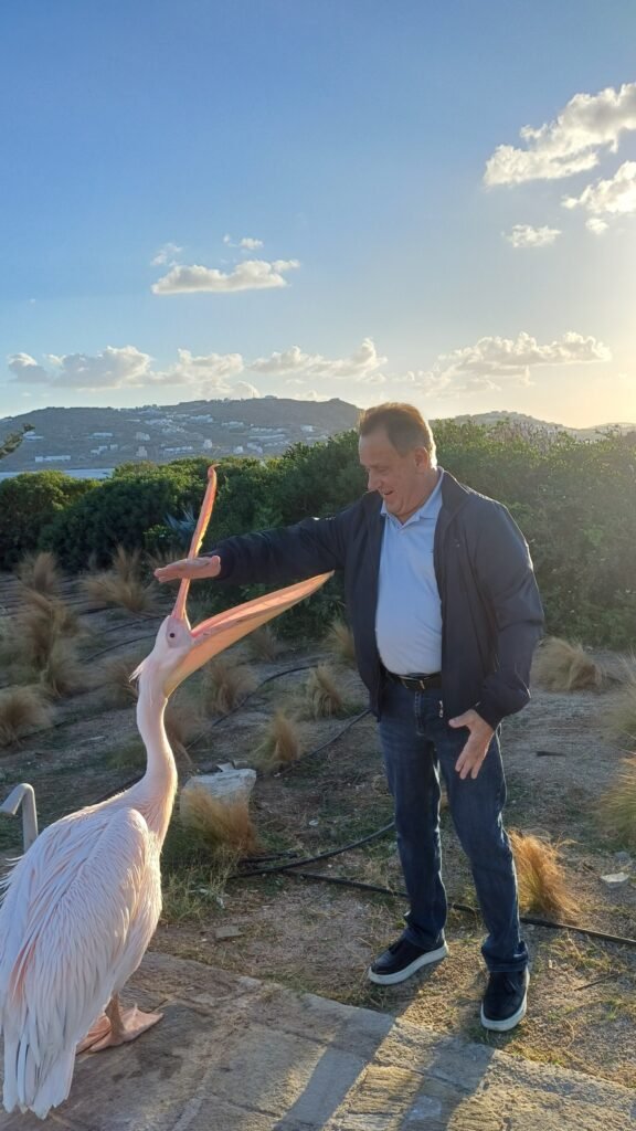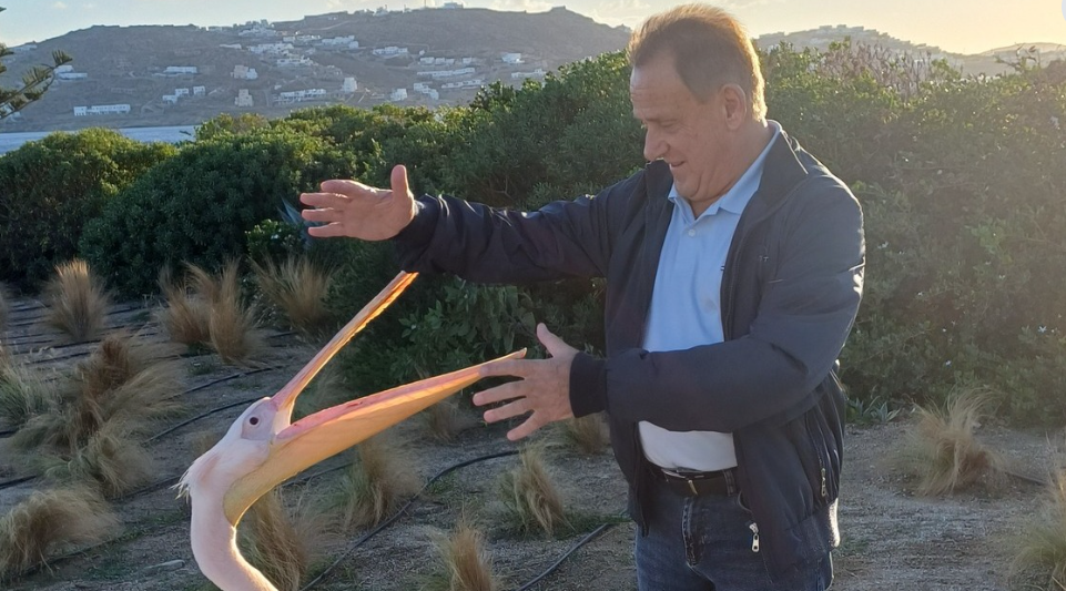 Στο μήνυμά του, ο κ. Βερώνης υπογράμμισε τη βαθιά σύνδεση του νησιού με τον πελεκάνο, ο οποίος αποτελεί αναπόσπαστο σύμβολο της Μυκόνου εδώ και δεκαετίες, συνδεδεμένο άρρηκτα με την ιστορία και την ταυτότητα του κοσμοπολίτικου νησιού.