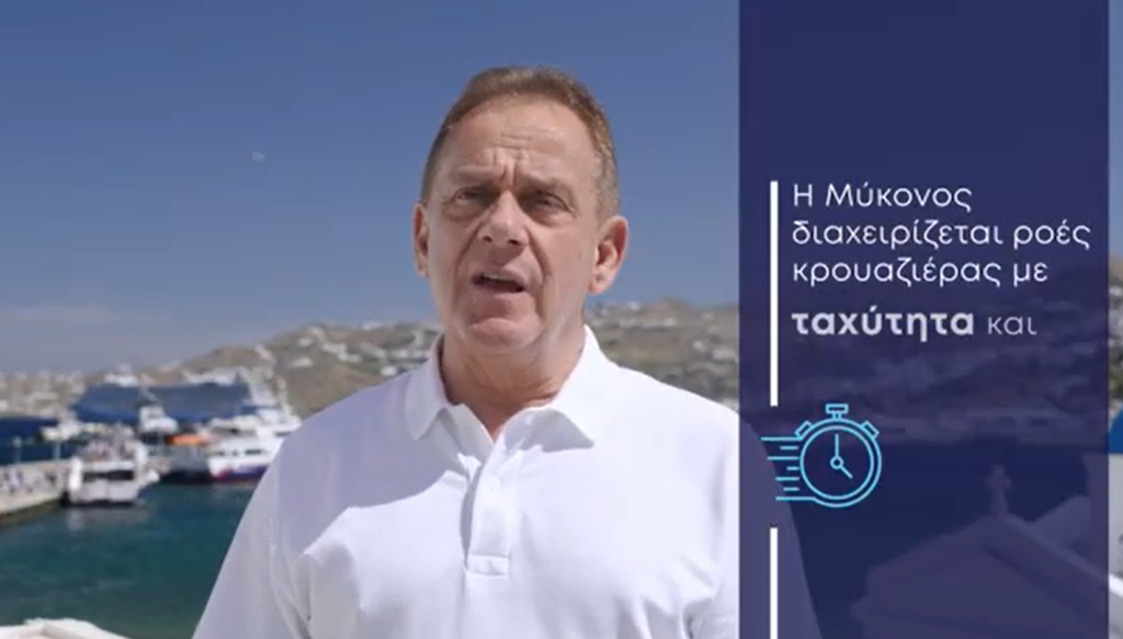 Στο βίντεο της καμπάνιας, ο κ. Βερώνης τόνισε ότι η κρουαζιέρα αποτελεί έναν από τους βασικούς μοχλούς της τουριστικής οικονομίας της Μυκόνου.