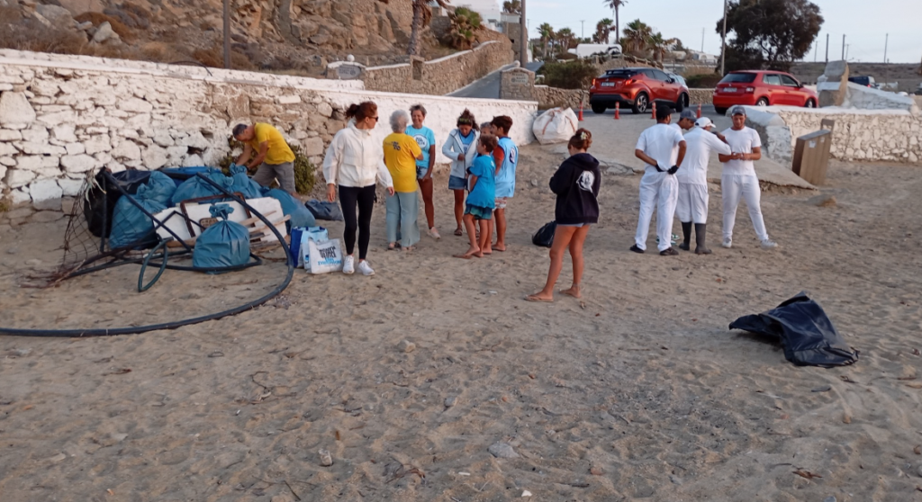 Μια πρωτοβουλία αγάπης και προσφοράς για το περιβάλλον έλαβε χώρα το απόγευμα της Κυριακής, όταν η ομάδα εθελοντών «Αγκαλιά-Ζω τη Μύκονο» οργάνωσε έναν επιτυχημένο καθαρισμό στην παραλία της Μεγάλης Άμμου. Η δράση, που ξεκίνησε στις 7 το απόγευμα, ένωσε κατοίκους και επισκέπτες σε μια κοινή προσπάθεια για την προστασία του νησιού.