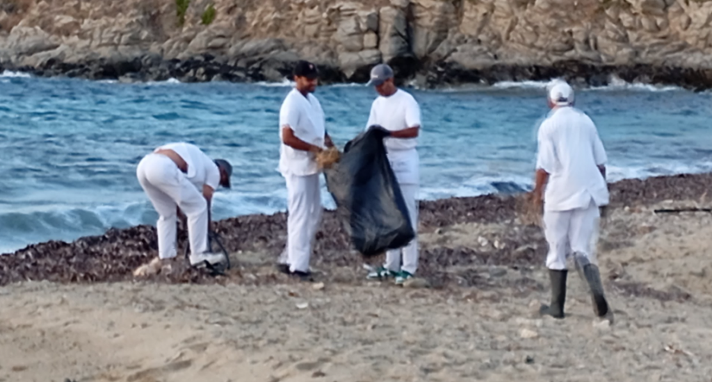 Οι εθελοντές, φορώντας μπλουζάκια σε τρία χαρακτηριστικά χρώματα – κίτρινο, μπλε ,άσπρο– γέμισαν την παραλία με ενέργεια και χαμόγελα. Στον καθαρισμό συμμετείχαν τόσο μέλη της τοπικής κοινότητας, όσο και μια ομάδα από το ξενοδοχείο της Μεγάλης Άμμου, η οποία συνέβαλε με μεγάλη χαρά.