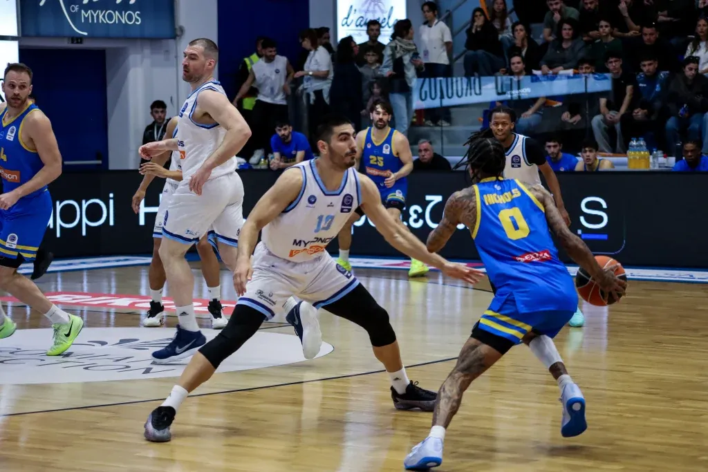 Η Μύκονος νίκησε με 92-88 το Περιστέρι, στο πλαίσιο της 25ης αγωνιστικής της Greek Basketball League και προκρίθηκε μαθηματικά στα play-offs του πρωταθλήματος, στην παρθενική της χρονιά στην πρώτη τη τάξει εθνική κατηγορία.
