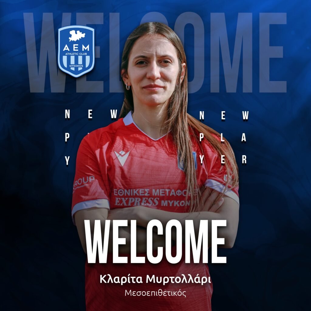 Η Α.Ε. Μυκόνου βρίσκεται στην ευχάριστη θέση να παρουσιάσει την ποδοσφαιρίστρια Κλαρίτα Μυρτολλάρι, η οποία ενισχύει το ρόστερ της ομάδας μας.