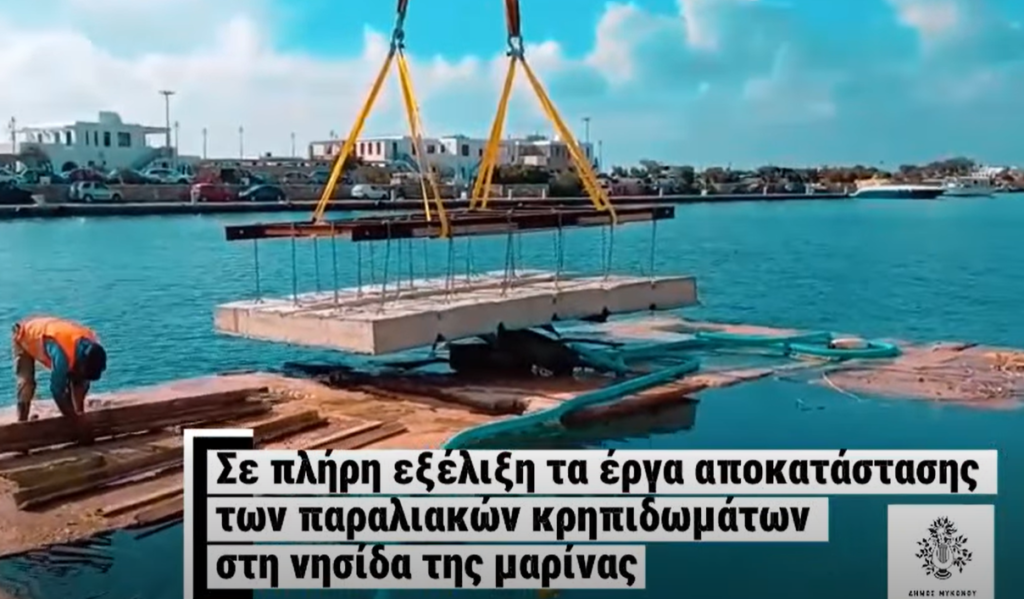 Σε πλήρη εξέλιξη βρίσκονται οι εργασίες αποκατάστασης των παραλιακών κρηπιδωμάτων της νησίδας στη μαρίνα του λιμένα Τουρλού, σηματοδοτώντας ένα σημαντικό βήμα στην αναβάθμιση των λιμενικών υποδομών της Μυκόνου.