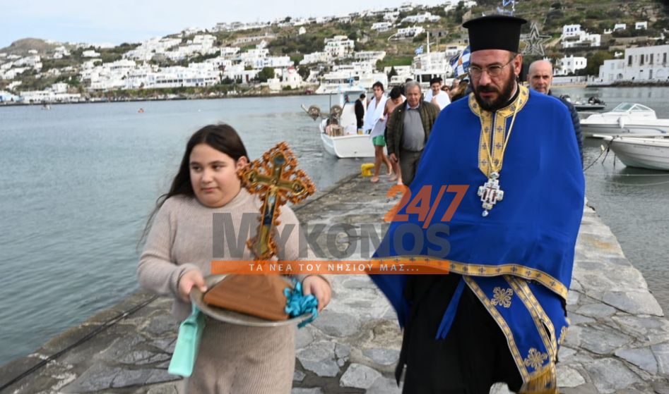 Στη Χώρα της Μυκόνου, οι εκδηλώσεις ξεκίνησαν νωρίς το πρωί με την πανηγυρική Θεία Λειτουργία στον Μητροπολιτικό Ναό της Μεγάλης Παναγιάς. Το πλήθος των πιστών, παρά το κρύο, κατέκλυσε τα σοκάκια της Χώρας για να παρακολουθήσει την τελετή του Μεγάλου Αγιασμού στα ιστορικά «Τρία Πηγάδια».