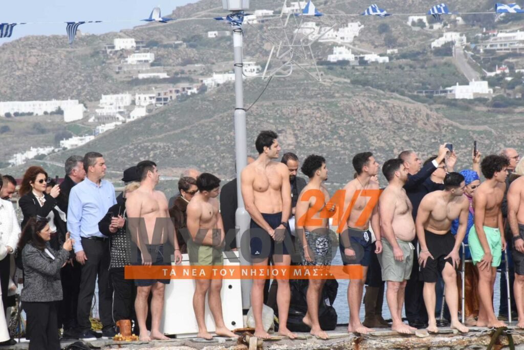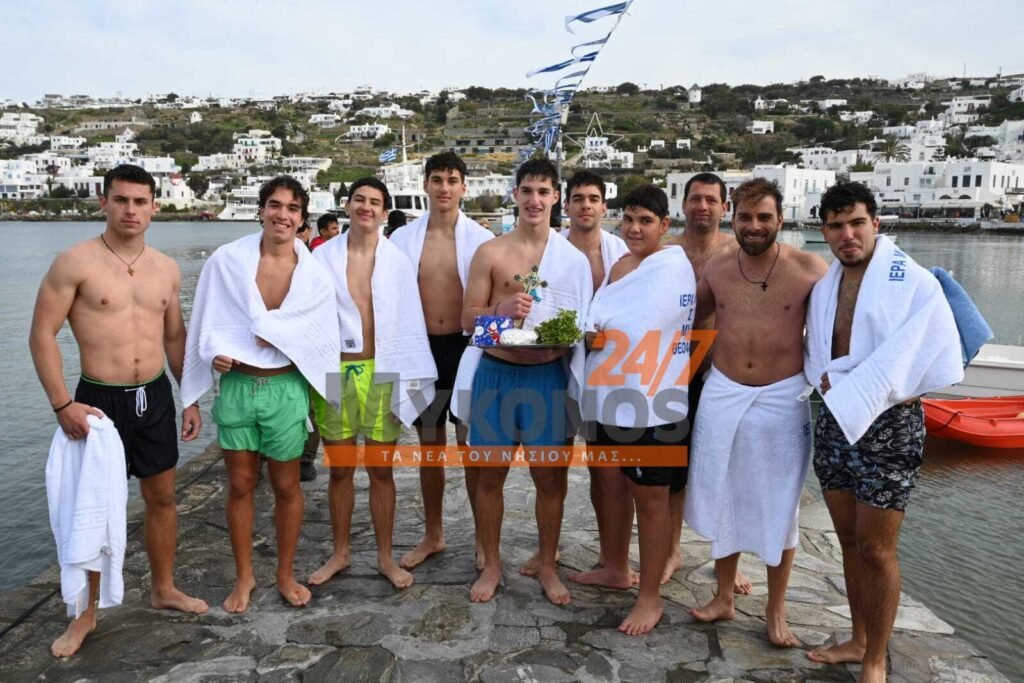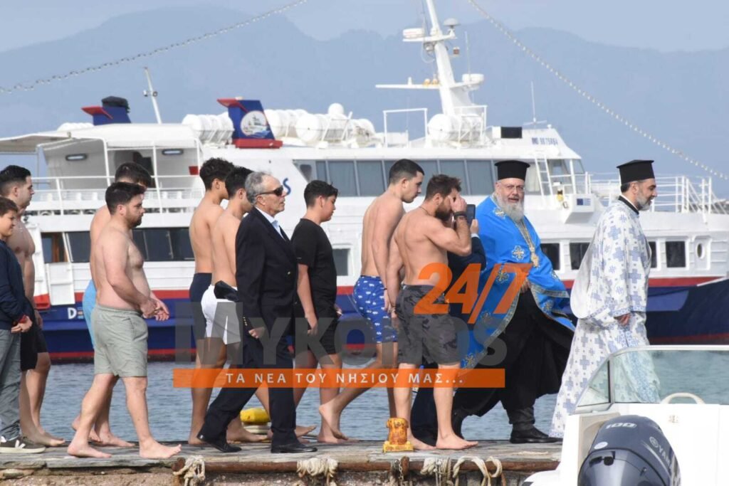 Η λιτανευτική πομπή κατέληξε στο παλιό λιμάνι, στον Άγιο Νικόλαο της «Καδένας». Εκεί, η ρίψη του Τιμίου Σταυρού στη θάλασσα συνοδεύτηκε από τις σειρήνες των πλοίων και τις ευχές των παρευρισκόμενων, με τους νέους του νησιού να τιμούν το έθιμο πέφτοντας στα παγωμένα νερά.