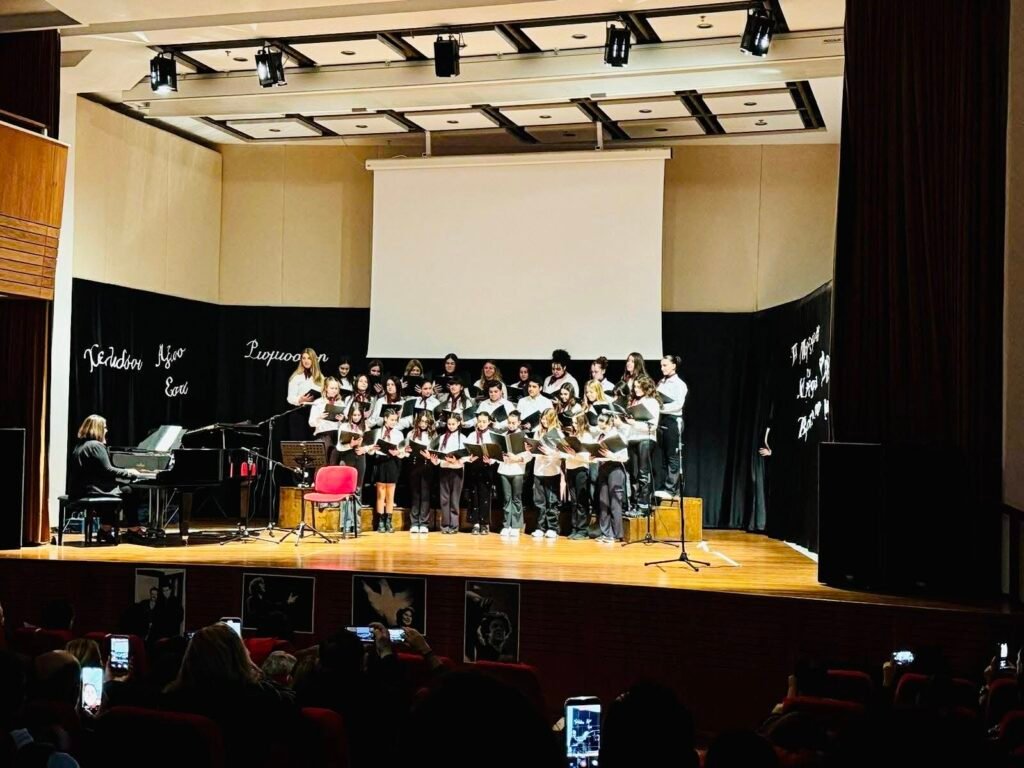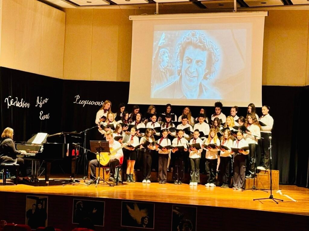 Με μεγάλη επιτυχία και υπό το βλέμμα ενός ενθουσιώδους κοινού, το Γυμνάσιο πραγματοποίησε μια ξεχωριστή πολιτιστική εκδήλωση-αφιέρωμα στα «100 ΧΡΟΝΙΑ ΜΙΚΗΣ ΘΟΔΩΡΑΚΗΣ», στο Γρυπάρειο Πολιτιστικό Κέντρο.