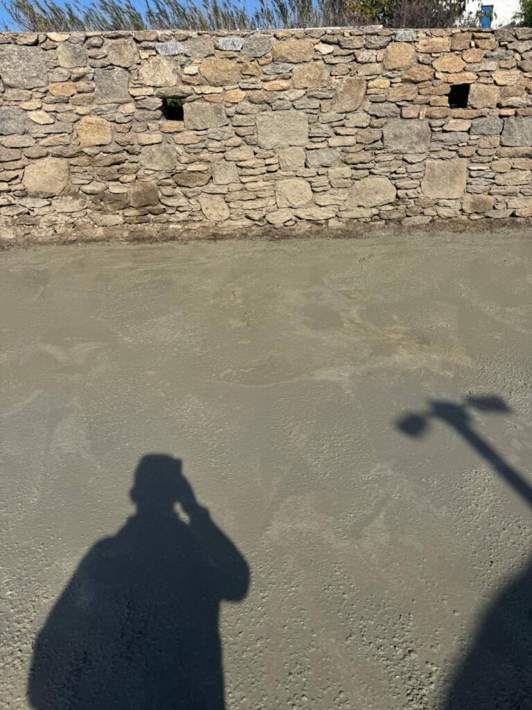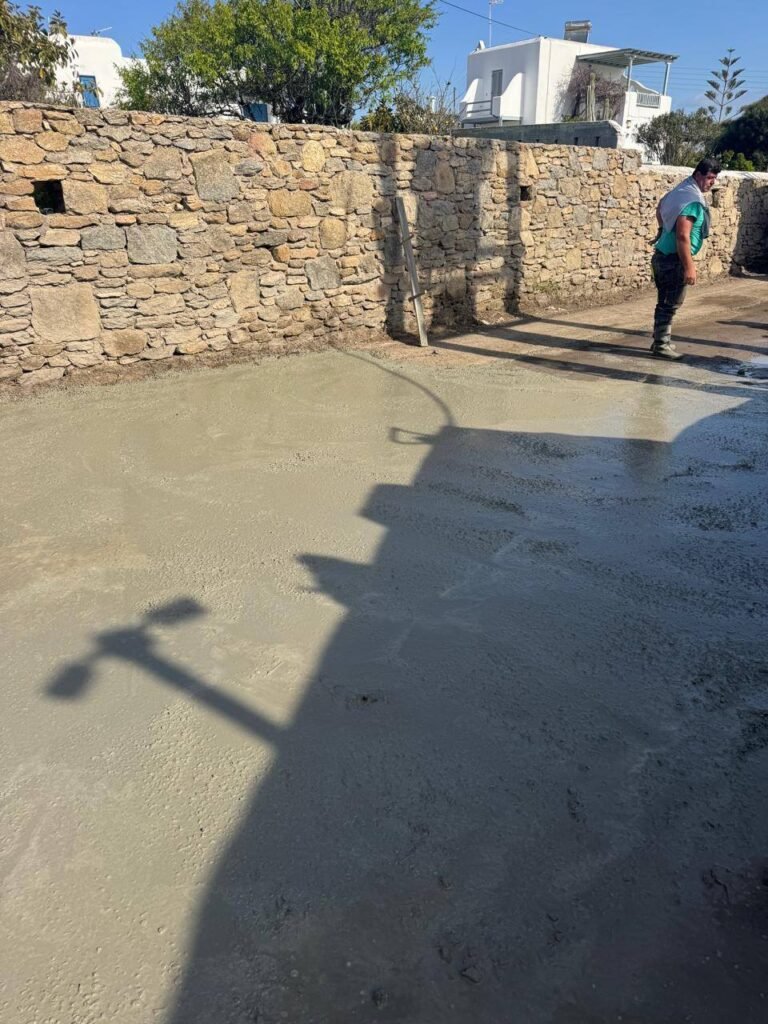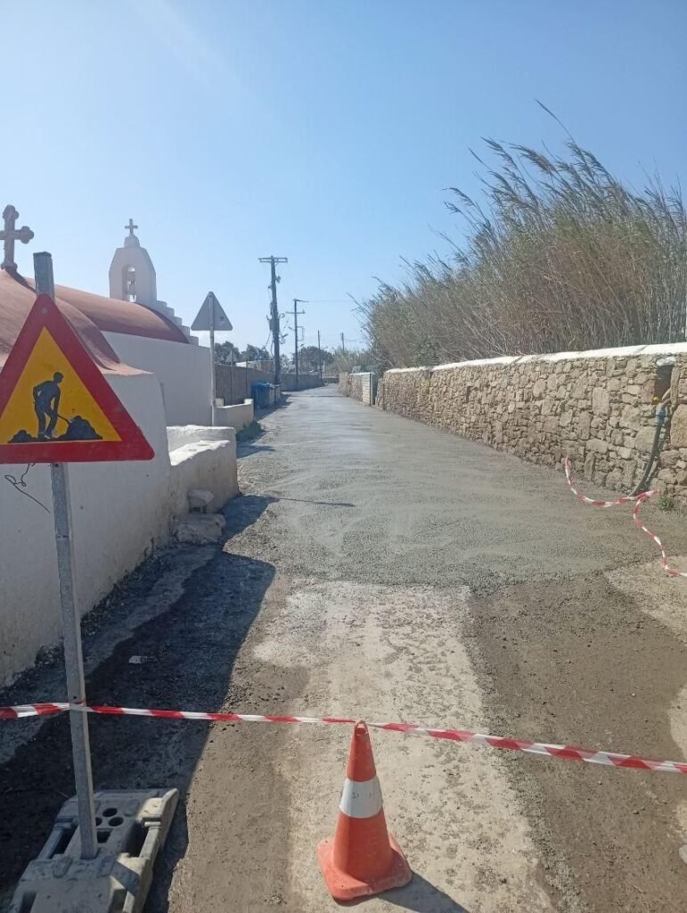 Λόγω της εκτεταμένης διάβρωσης και της κατεστραμμένης υπόβασης του δρόμου, η τεχνική παρέμβαση κρίθηκε επιβεβλημένη. Αυτή τη στιγμή, τα συνεργεία προχωρούν σε στρώση σκυροδέματος (μπετόν). Η επιλογή του συγκεκριμένου υλικού σε αυτή τη φάση στοχεύει στη δημιουργία μιας ισχυρής και σταθερής βάσης, ικανής να αντέξει τις πιέσεις και να αποτρέψει μελλοντικές καθιζήσεις που ταλαιπωρούσαν τους διερχόμενους οδηγούς.